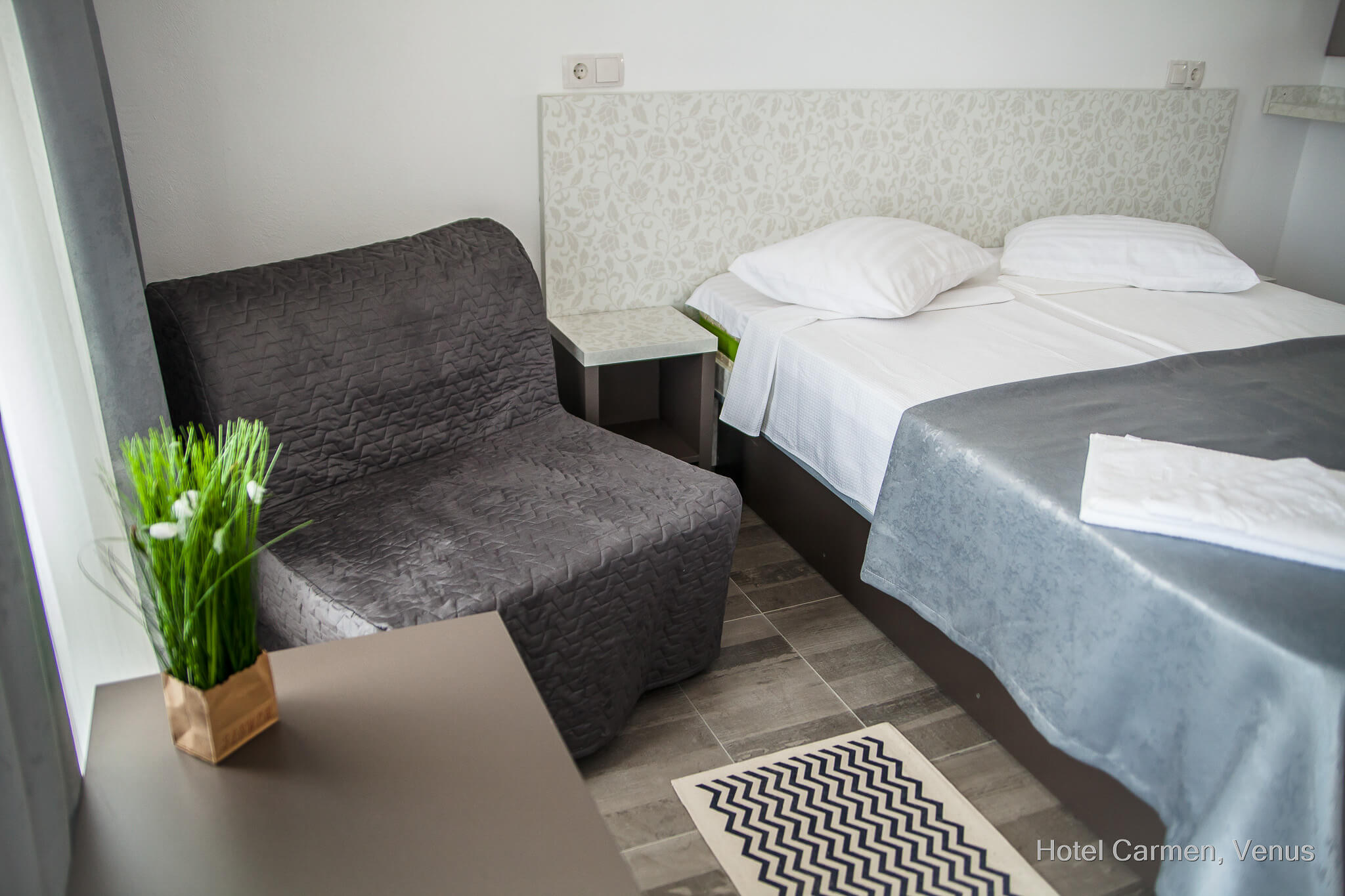 Amplasat la doar 50 de metri de plaja Mării Negre, hotelul Carmen din stațiunea Venus se bucură de o poziționare ideală, fiind situat într-o oază de liniște, cu vegetație bogată și aer curat. Această stațiune îi poartă numele zeiței frumuseții și face parte din municipiul Mangalia, fiind situată în partea de sud a litoralului românesc.
